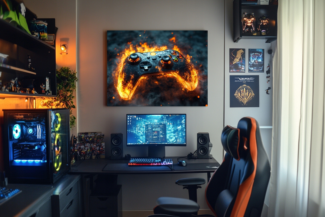 Obraz na płótnie canvas - Gamepad on fire