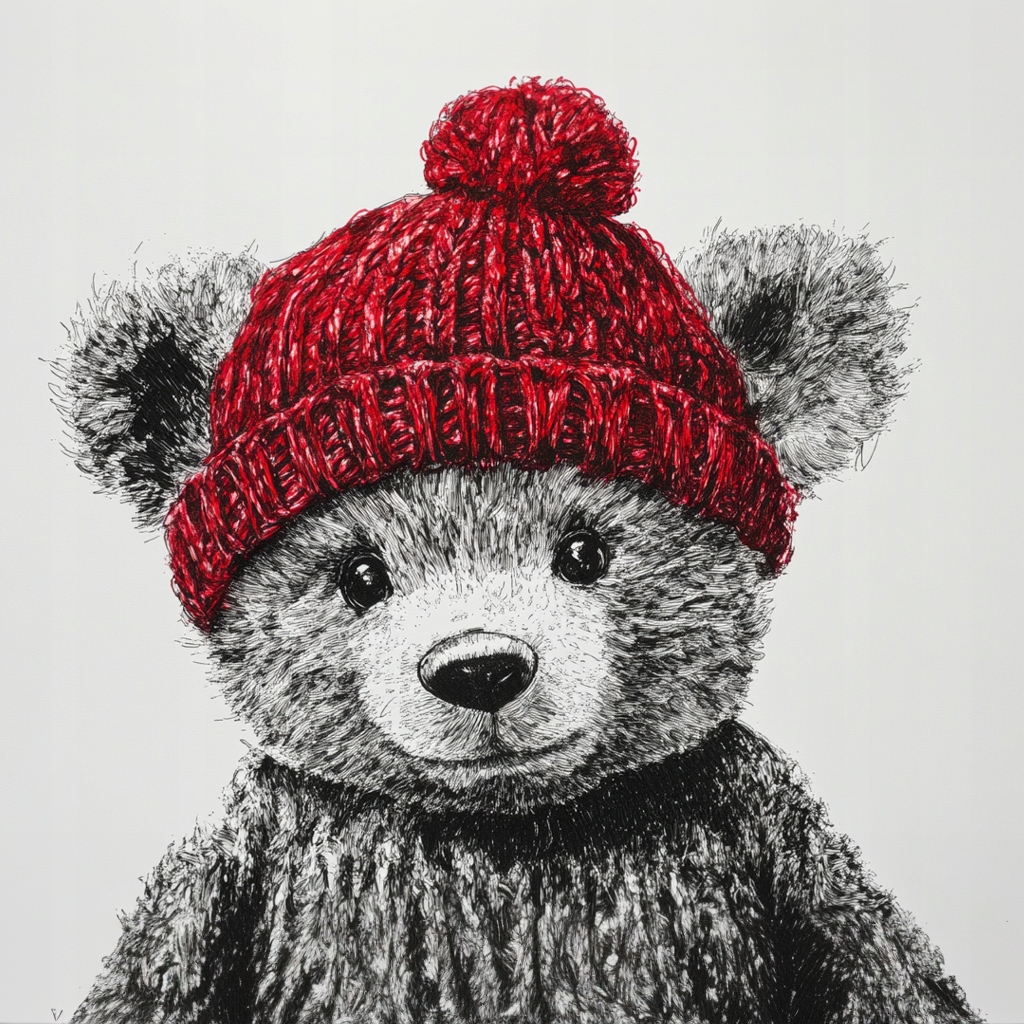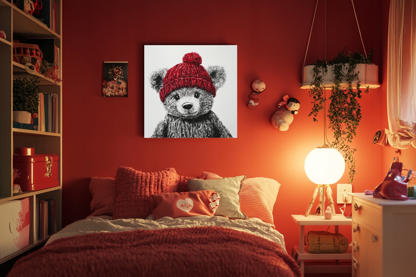 Obraz na płótnie canvas - Misiek w czapce z pomponem