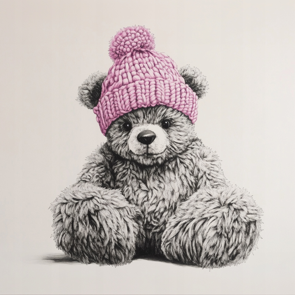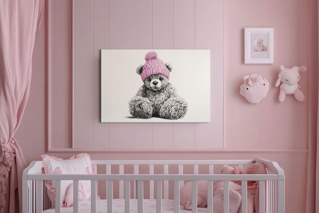 Obraz na płótnie canvas - Misiek w różowej czapie