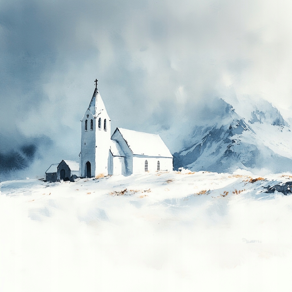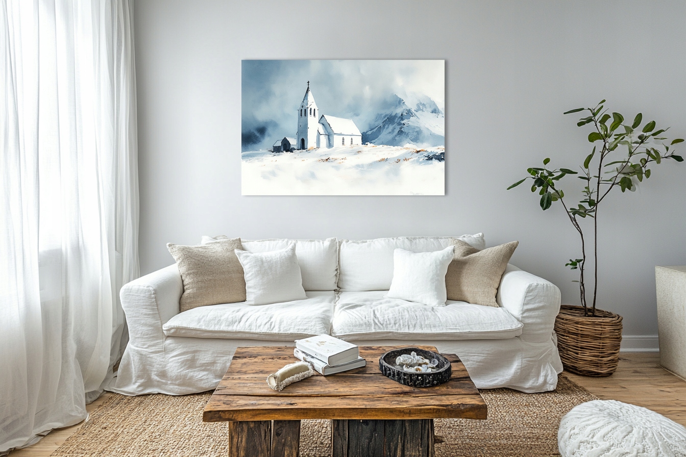 Obraz na płótnie canvas - Samotny kościół wśród mroźnej pustki